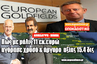 Το εκπληκτικότερο που ανακαλύψαμε όμως, είναι ότι η εν λόγω εταιρία, ανήκει στην Goldman Sachs (upbeat on European Goldfields after Greek approval) !!!